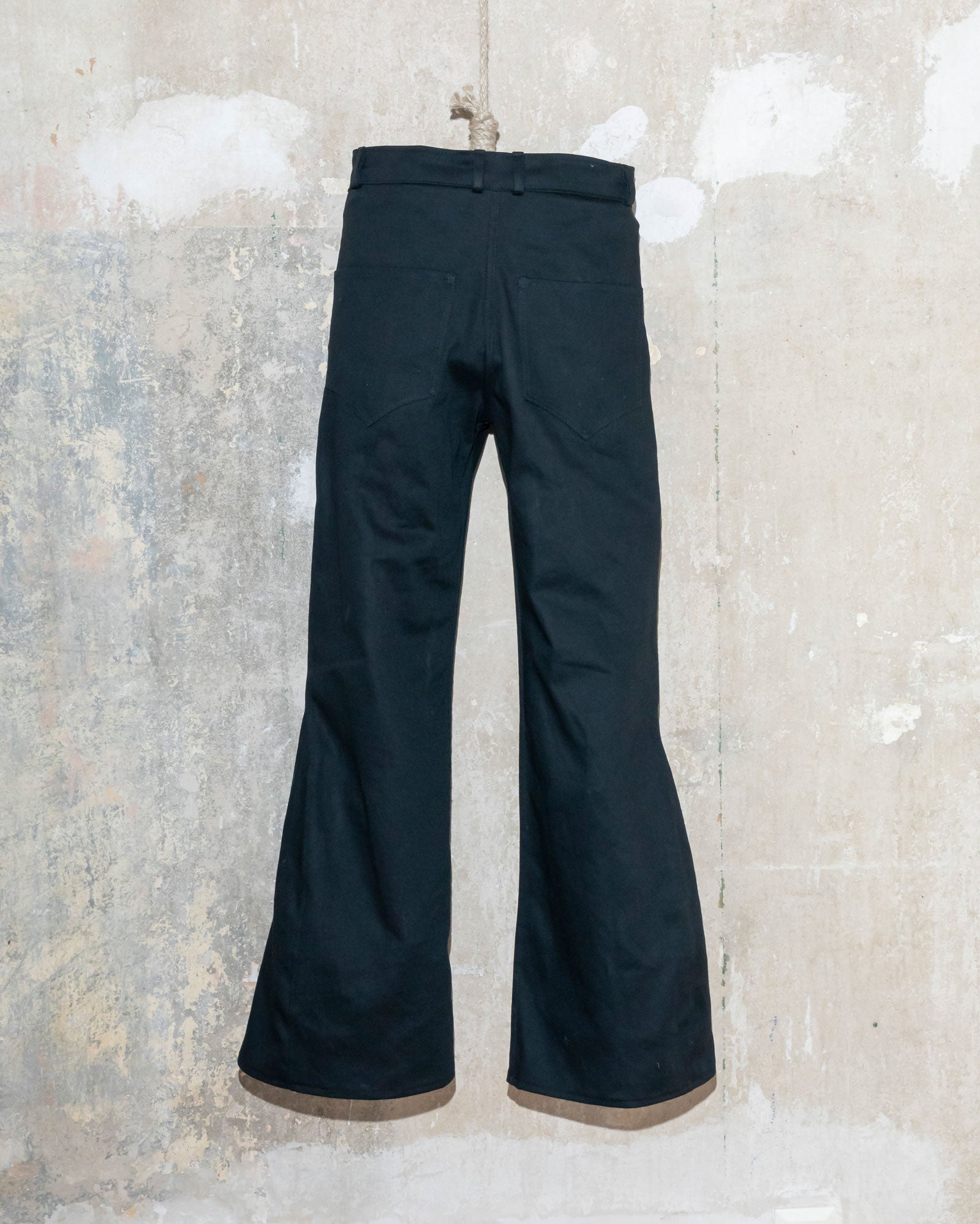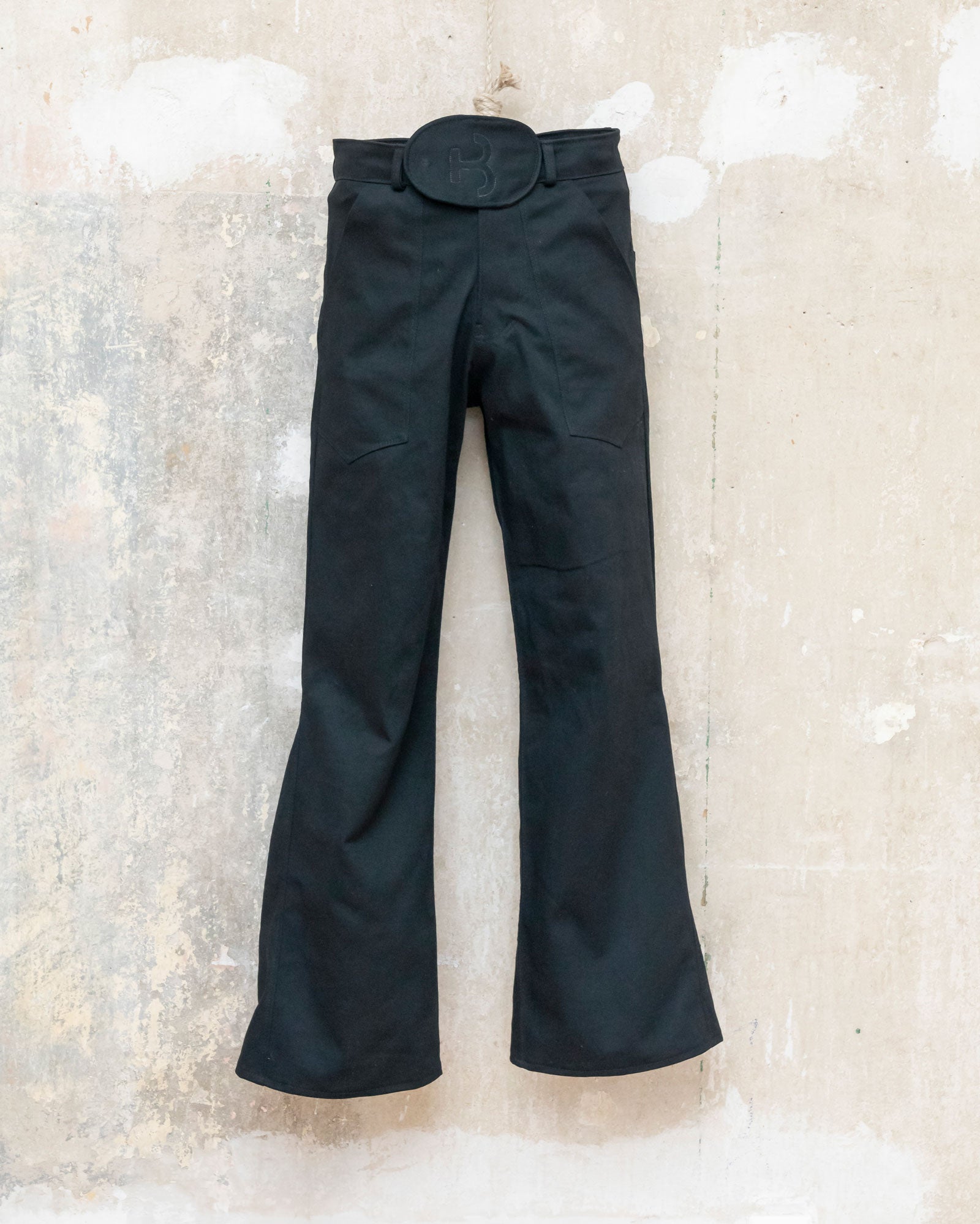 Wide flared leg denim jeans with high waist, western yoke details and big denim belt buckle. Please allow around 2 weeks for production