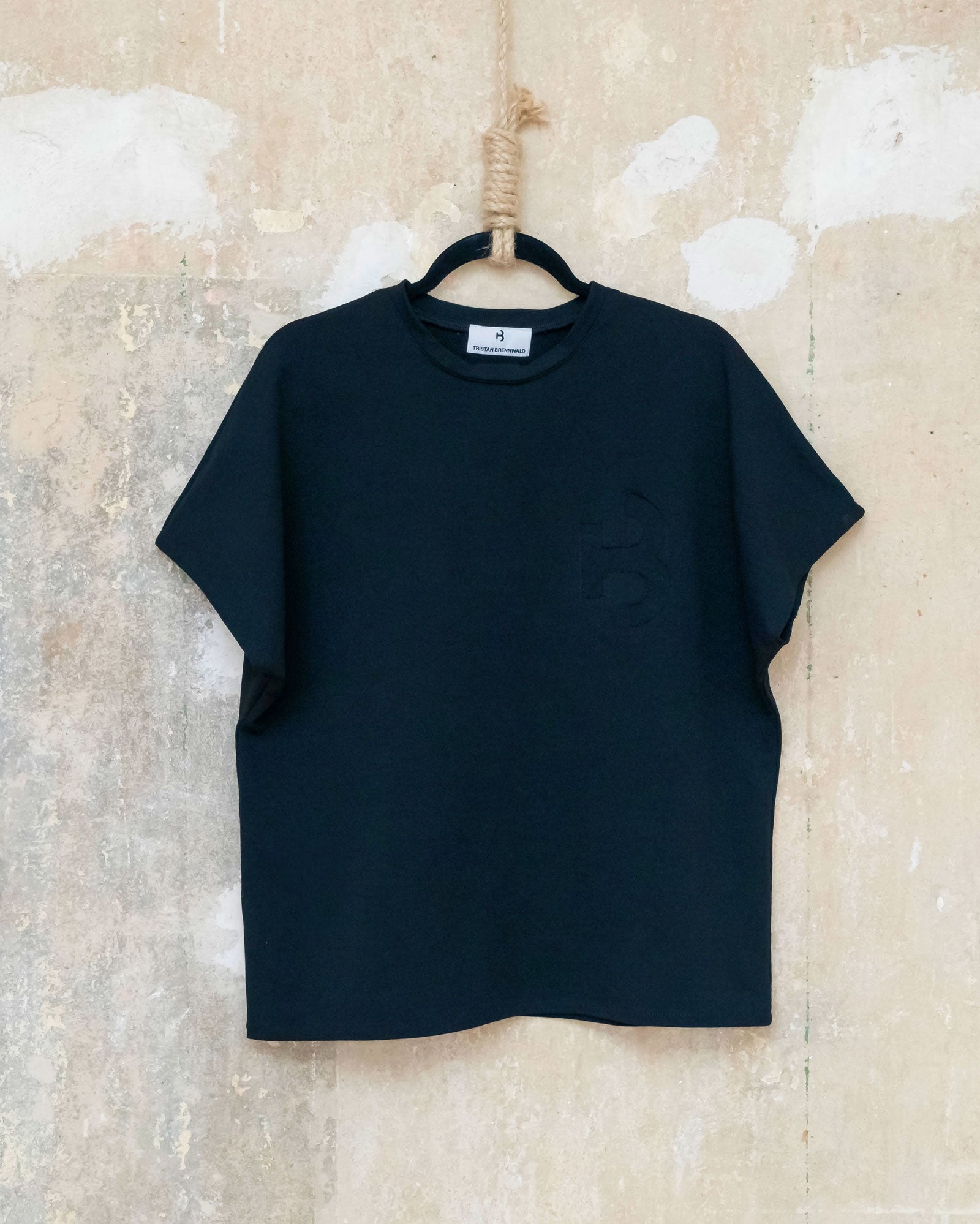T-Shirt made from two panels of heavy french terry cotton with logo detailing on the right chest. Slightly cropped fit. Please allow around 2 weeks for production